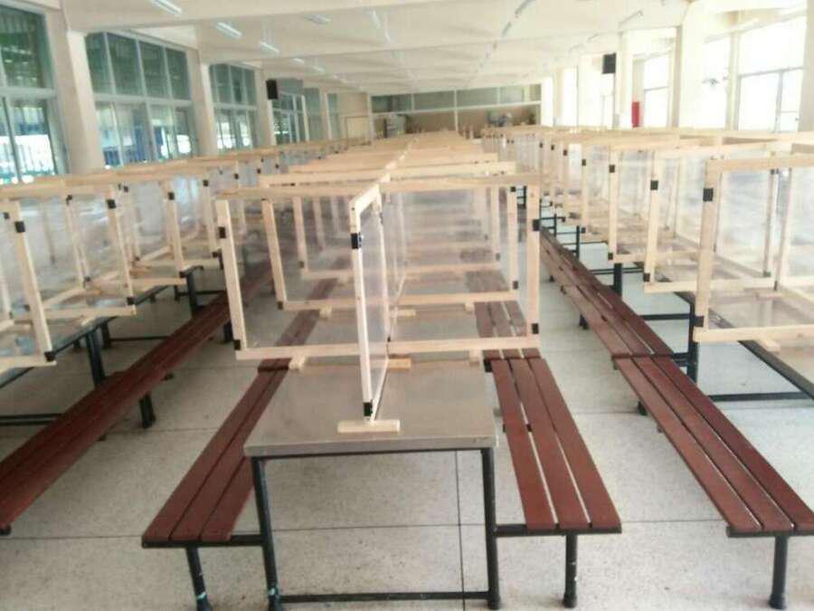 ห้องอาหารโรงเรียนได้ทำฉากกั้นเว้นระยะ ห่างในการรับประทานอาหาร S:0