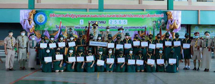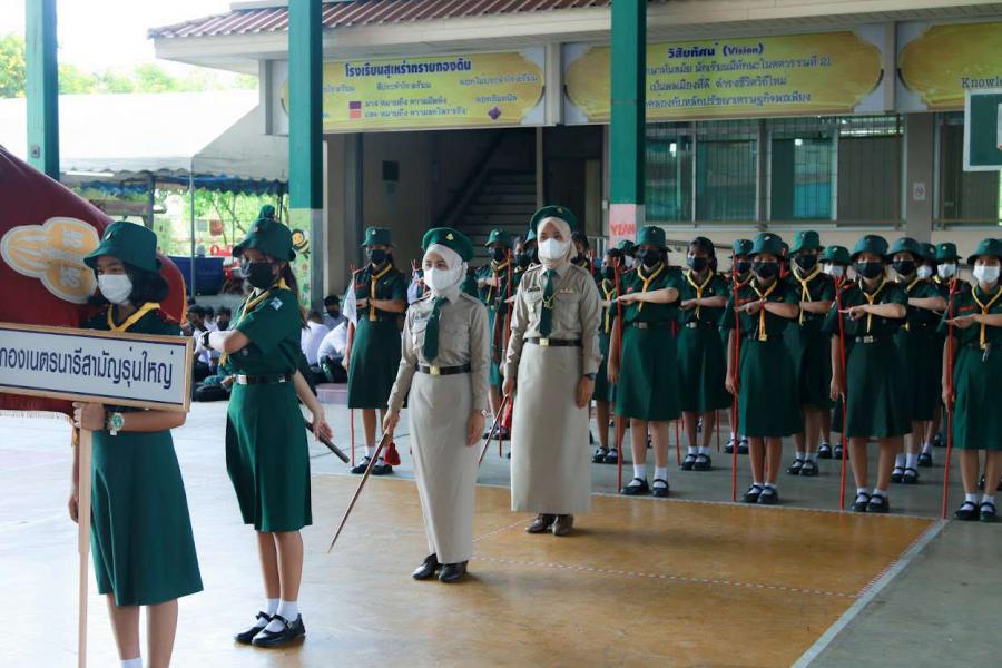 โรงเรียนสุเหร่าทรายกองดิน จัดพิธีทบทวนคำปฏิญาณและสวนสนามลูกเสือเนตรนารี และมอบโล่รางวัลให้กับเนตรนารีที่ได้รับรางวัล" รองชนะเลิศอันดับ1"