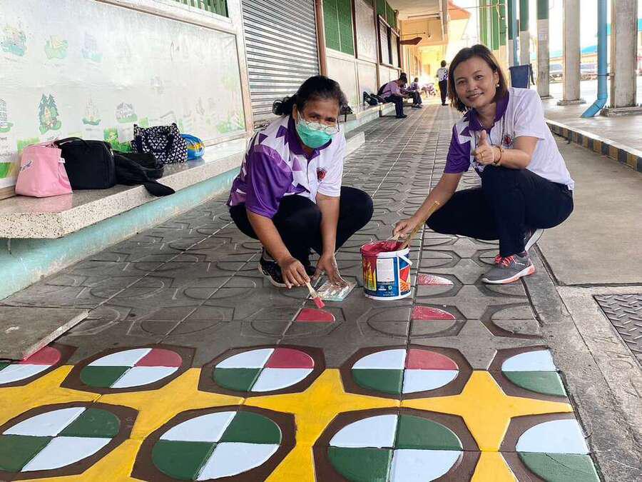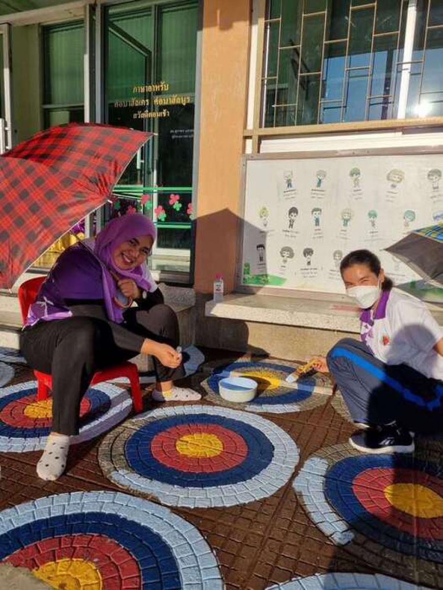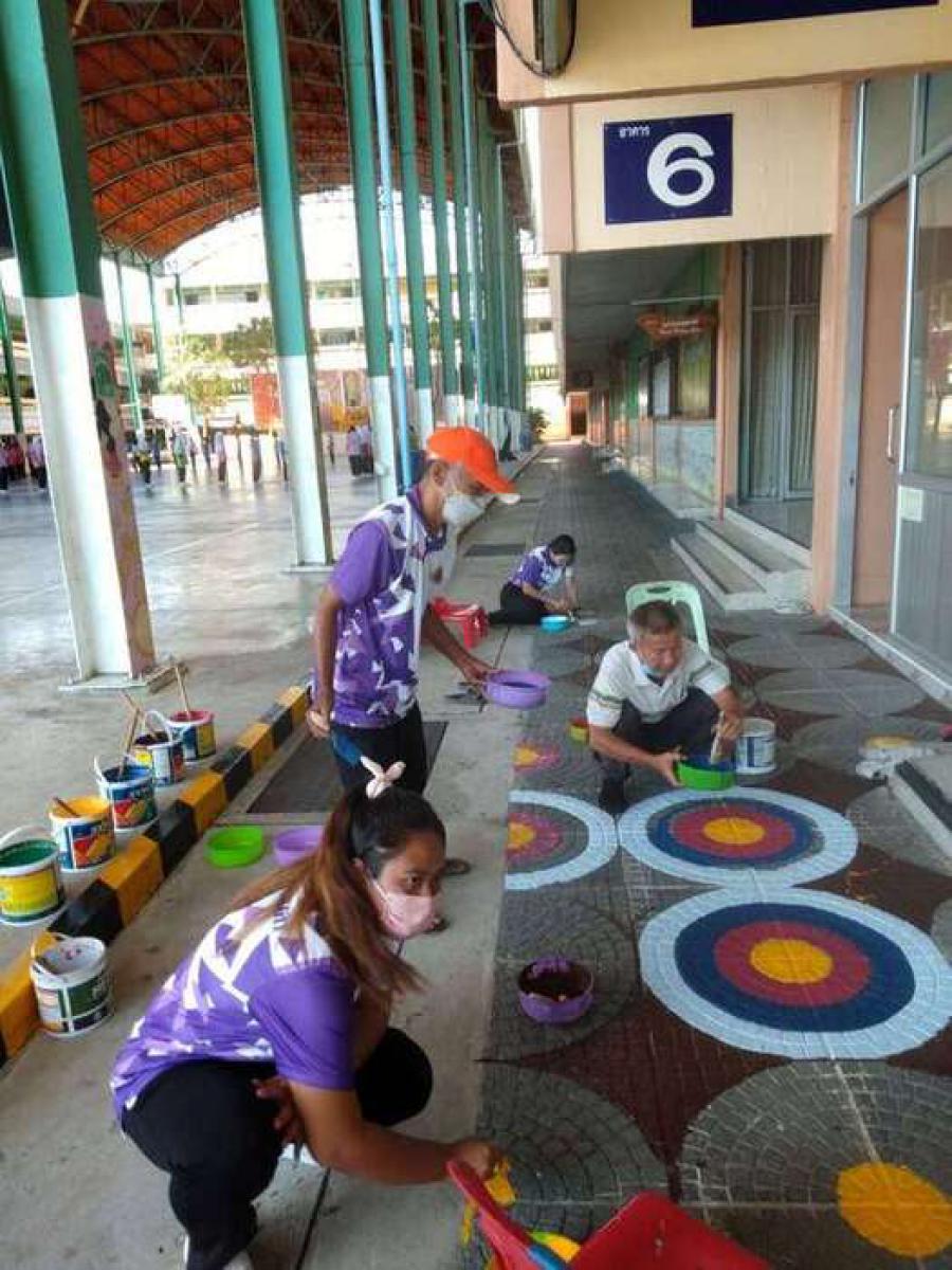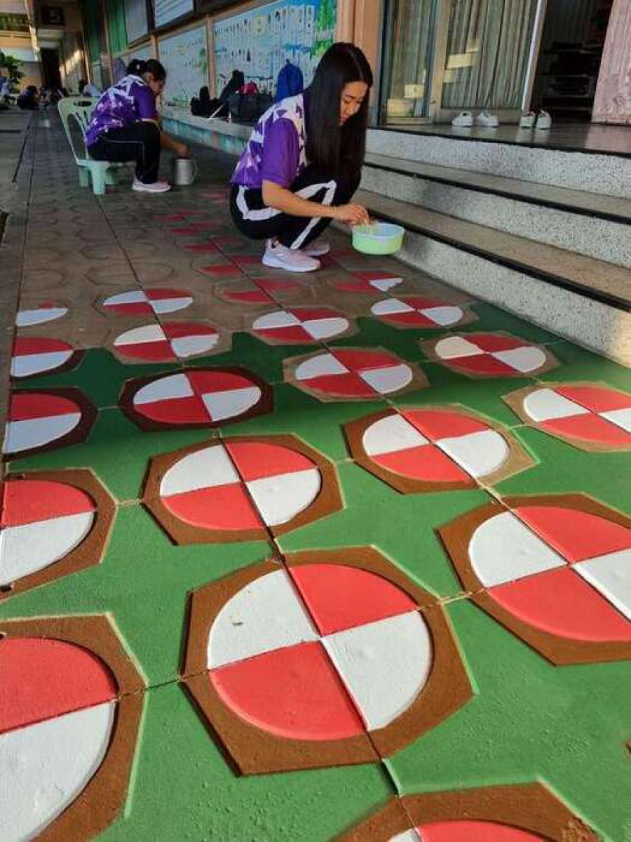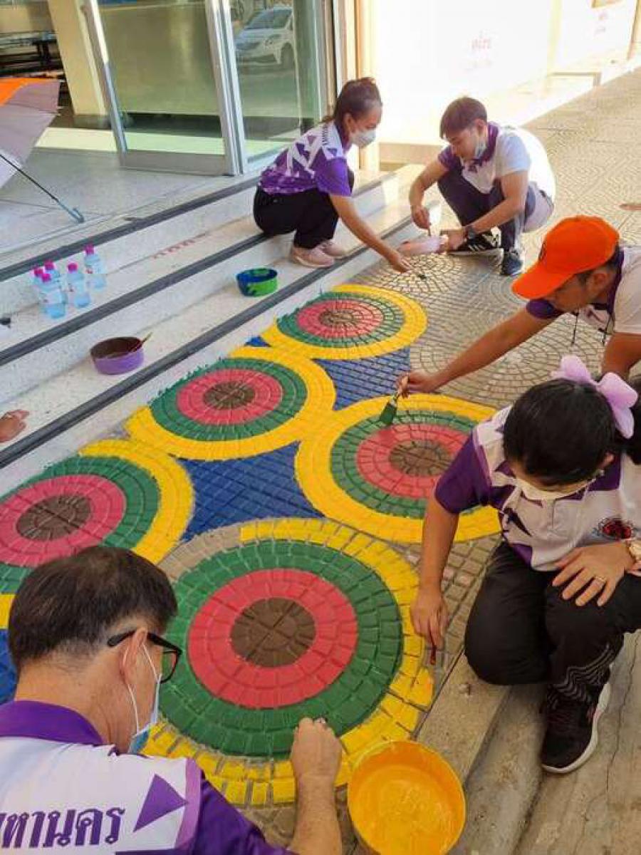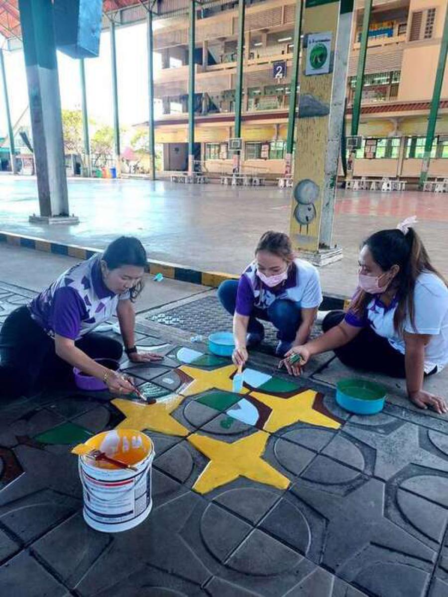 วันที่ 7 ธันวาคม 256 5 นำโดยนางสาวสุภาพร แสงสมาน ผู้อำนวยการสถานศึกษา พร้อมด้วยรองผู้ อำนวยการสถานศึกษา คณะครูและบุคลากรทุกคน ร่วมกันทาสีอิฐตัวหนอนบริเวณหน้าอาคารเรียนทุกอาคารให้สวยงาม สะอาด น่ามองส่งเสริมการเรียนรู้ เป็นโรงเรียนที่สวยสะอาดบรรยากาศวิชาการ ตามนโยบายผู้ว่าราชการกรุงเทพมหานคร S:0