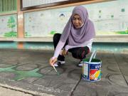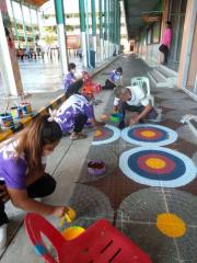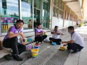 ผู้บริหารและคณะครู บุคลากร ร่วมกันทาสี เพื่อภูมิทัศน์ที่สวยงาม ของโรงเรียน
