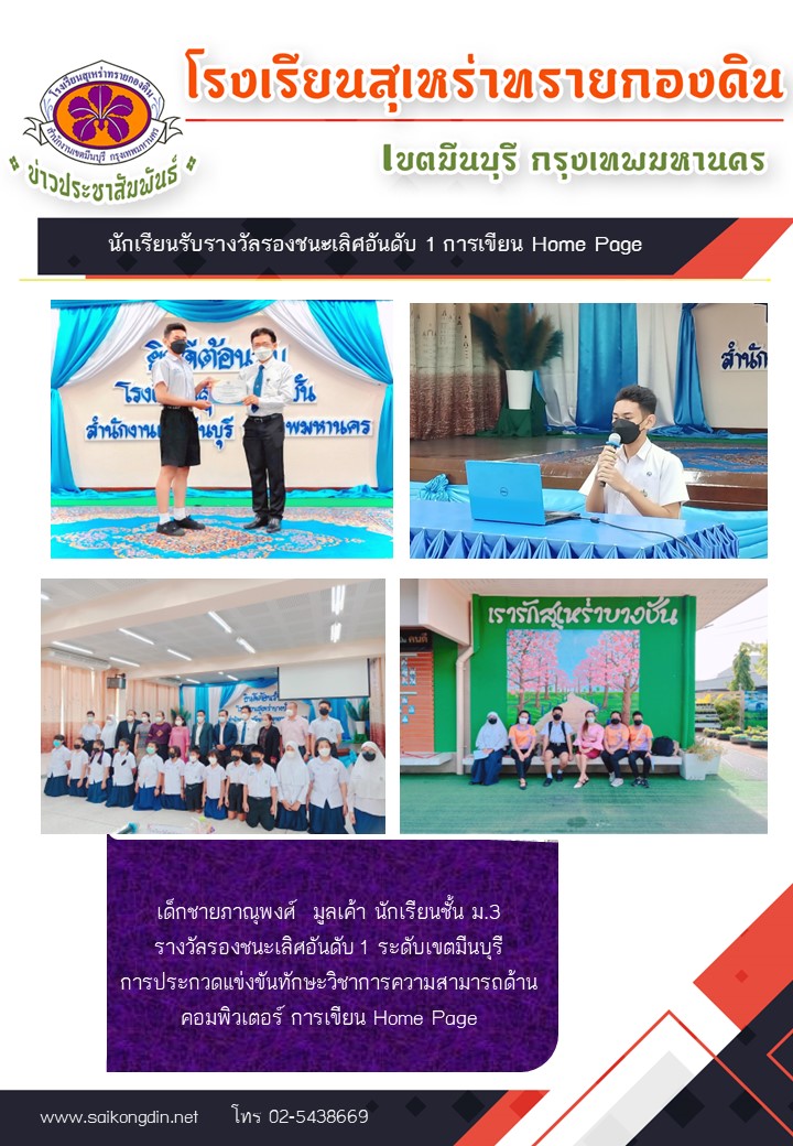 นักเรียนรับรางวัลรองชนะเลิศอันดับ 1 ระดับเขตมีนบุรี