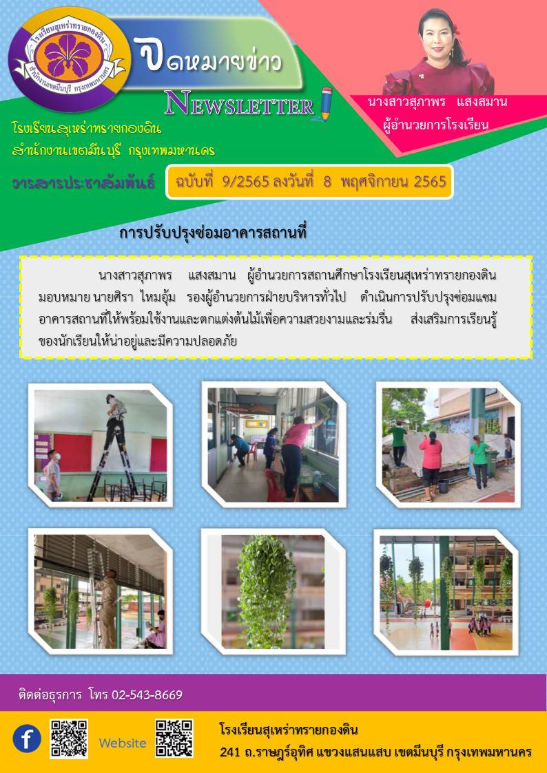 ดำเนินการปรับปรุงซ่อมแซมอาคารสถานที่ให้พร้อมใช้งานและตกแต่งต้นไม้เพื่อความสวยงามและร่มรื่น ส่งเสริมการเรียนรู้ของนักเรียนให้น่าอยู่และปลอดภัย